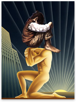 Galt solía ser uno de los titanes, pero la codicia, el sesgo colectivista, y la ingratitud de la sociedad a la que había dado tanto en el pasado le han inducido a la huelga –sin pelear con el sistema de opresión, ni siquiera tratar de cambiarlo, sino simplemente salir, llevando a otros con él. Y así se van, uno por uno: los grandes compositores, innovadores, creadores, directores, propietarios… Como resultado, el motor de todo el mundo se detiene, y la economía se hunde en el caos, porque cuando no hay nadie que sirva de presa, la sociedad de buitres insaciables ya no sabe qué hacer.